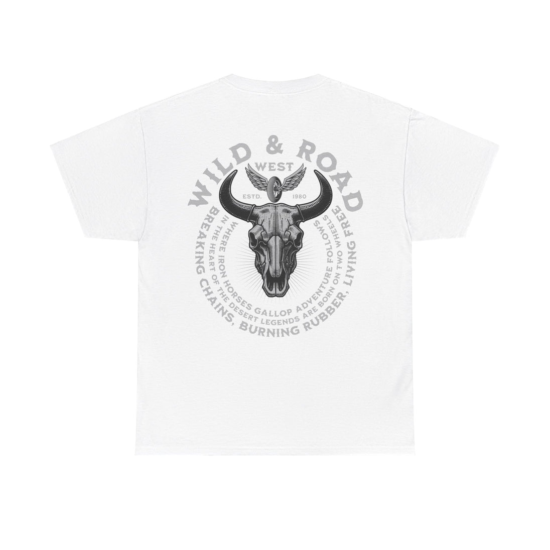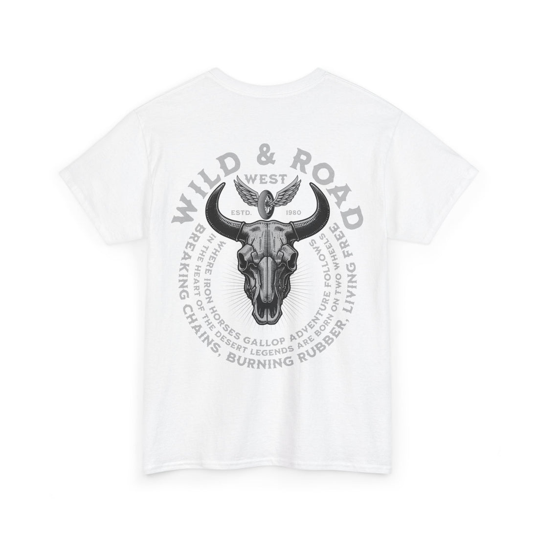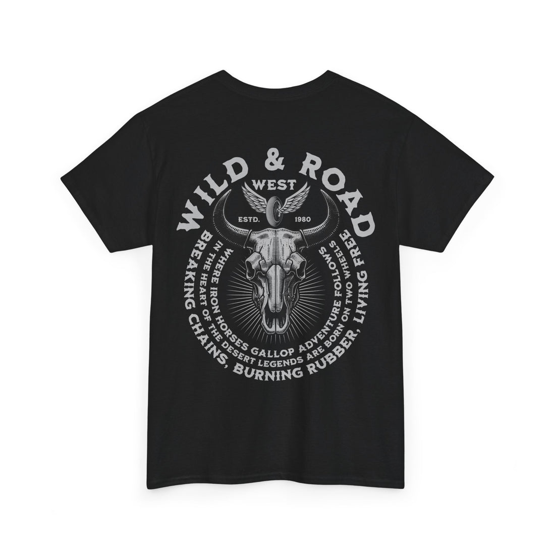 Wild & Road the unisex heavy cotton tee is the basic staple of any motorcycle rider wardrobe. It is the foundation upon which casual fashion grows. No side seams mean there are no itchy interruptions under the arms. The shoulders have tape for improved durability.