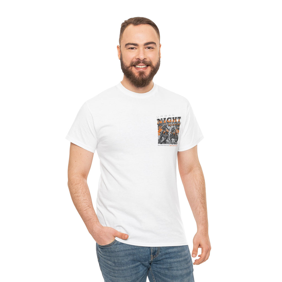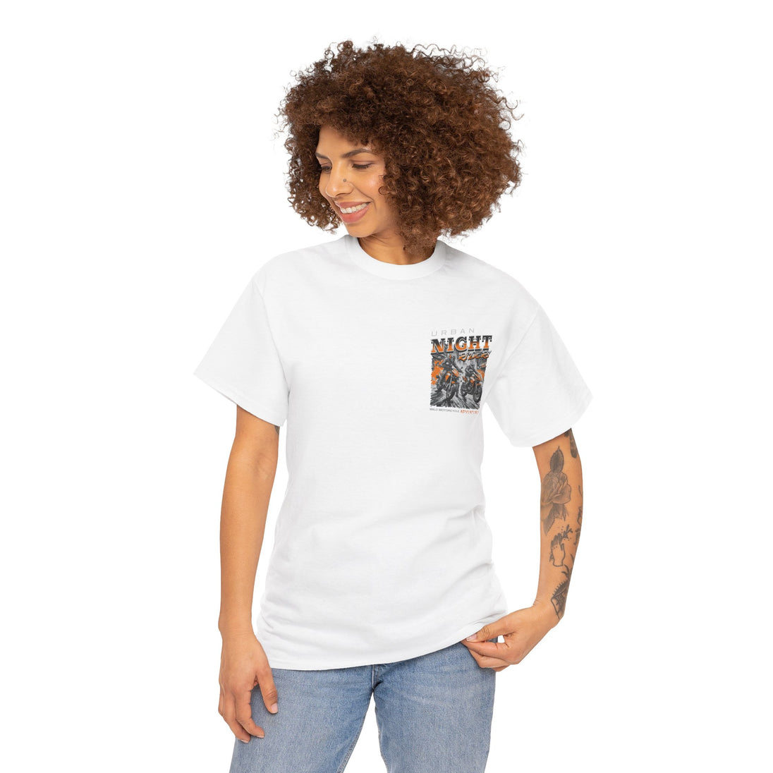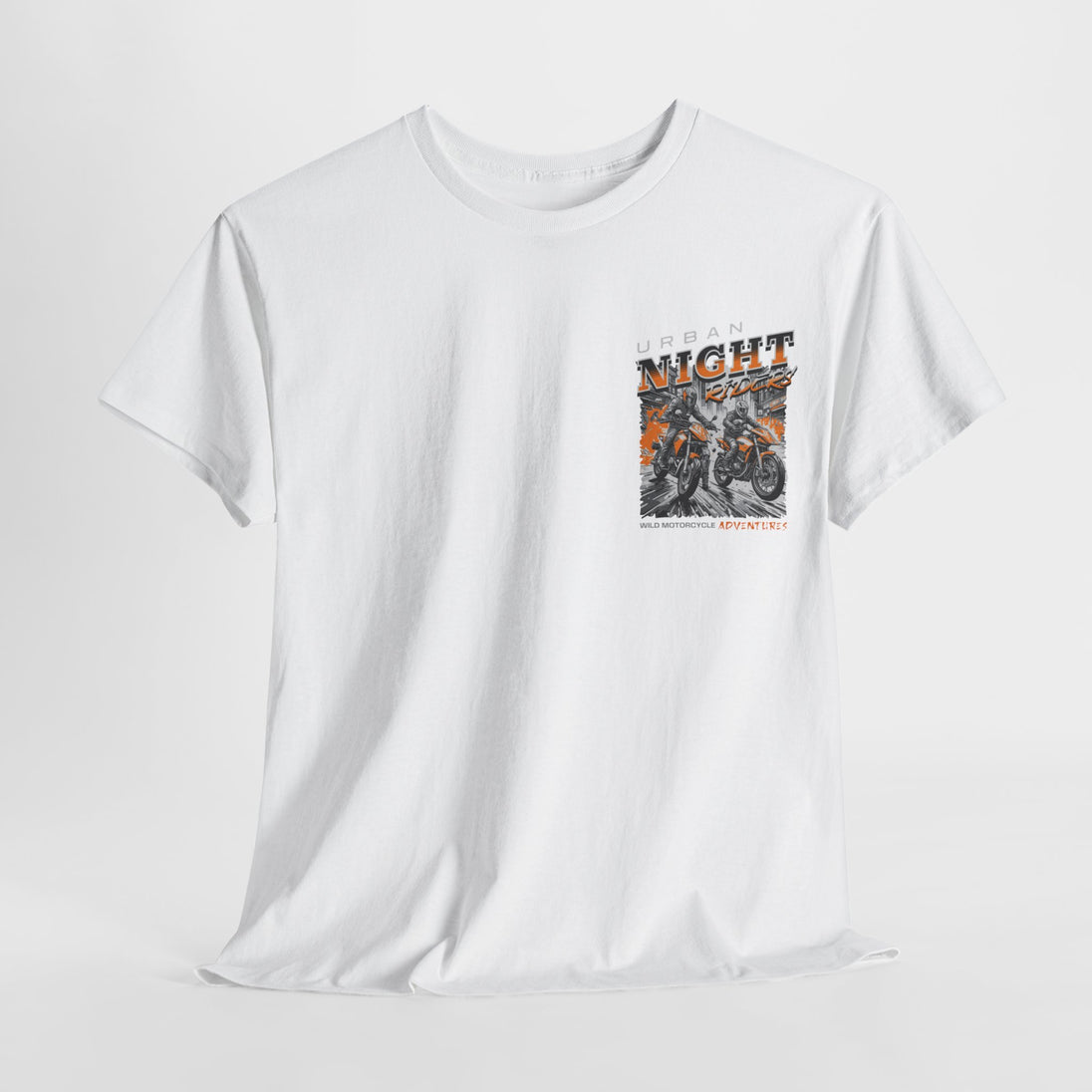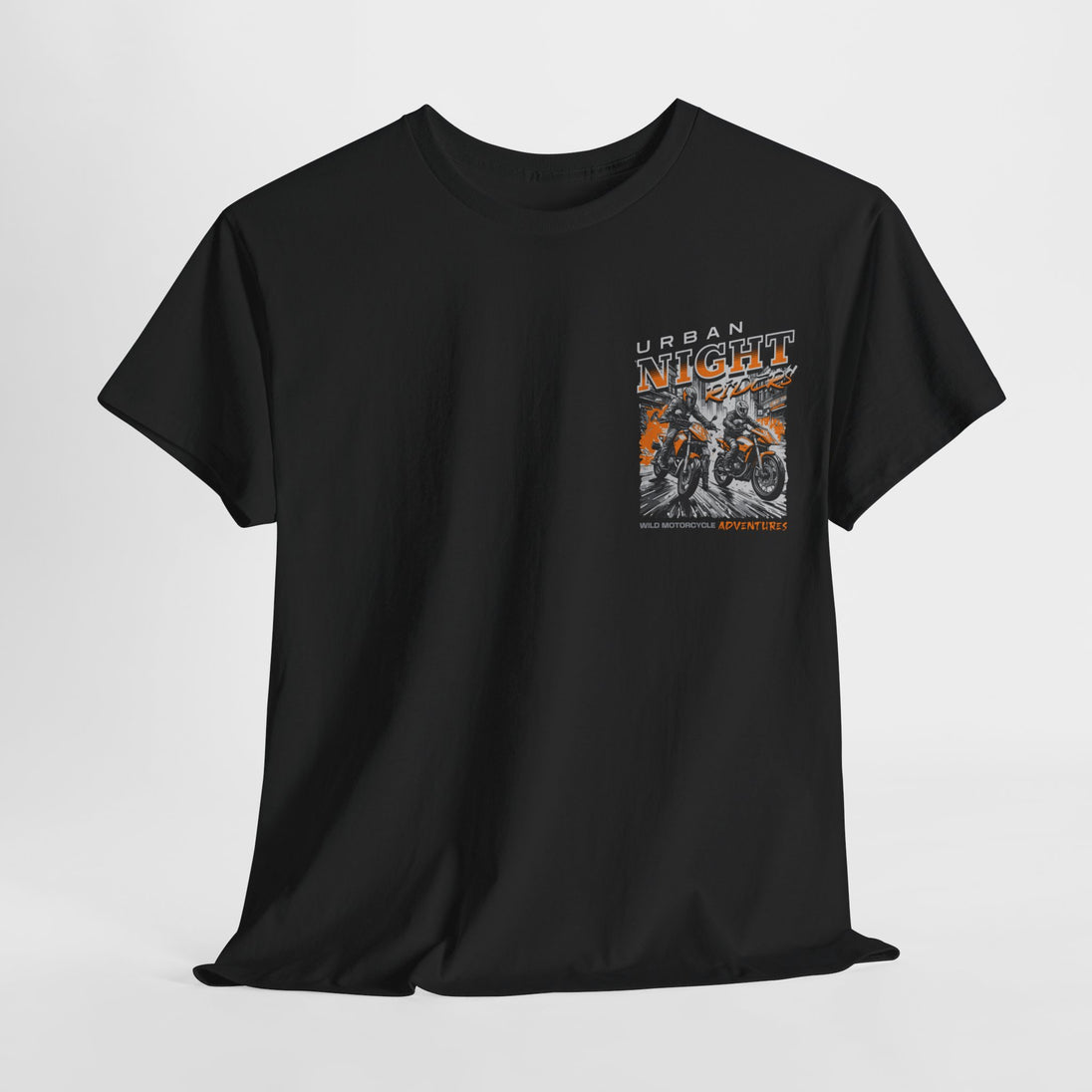 Urban Night Rider heavy cotton tee is the basic staple of any motorcycle rider wardrobe. It is the foundation upon which casual fashion grows. No side seams mean there are no itchy interruptions under the arms. The shoulders have tape for improved durability.